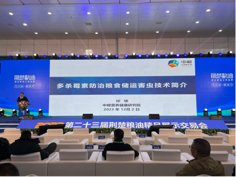 12月2日,在第二十三届荆楚粮油精品展示交易会上,中粮营养健康研究院对正在稻米中心试点推广的多杀霉素防治粮食储运害虫技术面向全国14个省(自治区、直辖市)、380余家企业进行推介,现场反应强烈。